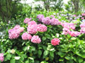 梅雨の合間の昼下がりでした。 見ごろを少し過ぎた花苑には、車 椅子で見学の人々がゆっくりと園内 を散策していました。 |