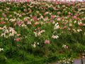 夏の花の写真で、下野草、ナデシコ、 ハス、サルスベリなどピンク系の色が 多いですが、桔梗、梅花藻もあります。 |
