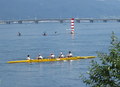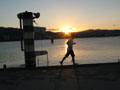 夏の琵琶湖漕艇場の落日です。 山影が1本の線になって比叡山に かかりました。 |