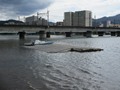 7月中旬の大雨で琵琶湖水位が +80p以上まで大増水しました。 南湖の湖岸と南郷洗堰、鹿跳橋 付近の激流を撮りました。 |
