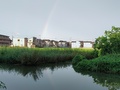 停滞前線の影響で長雨となり 虹のお土産をおいていきました 夕方の虹で真ん中はぼんやり でした。 |