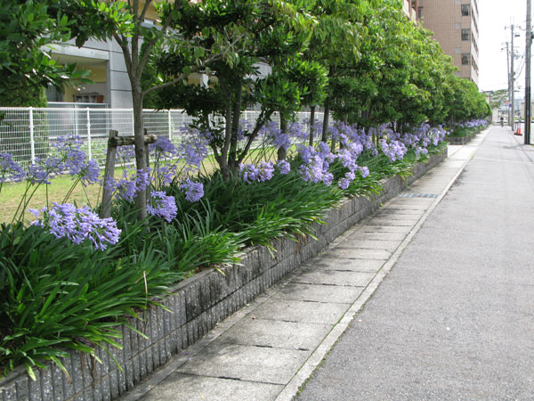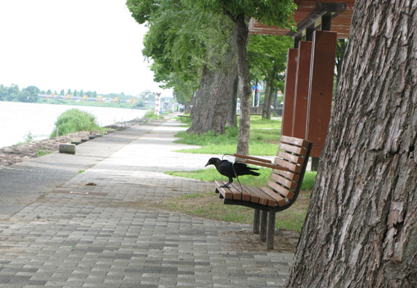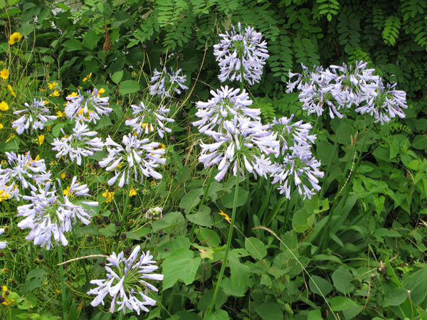 アガパンサスとキーウィーと湖岸のカラスの休憩