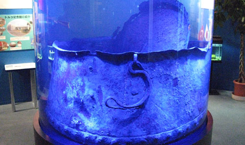 | 120年を経て引き上げられた「エルトゥールル」号の大なべ | |