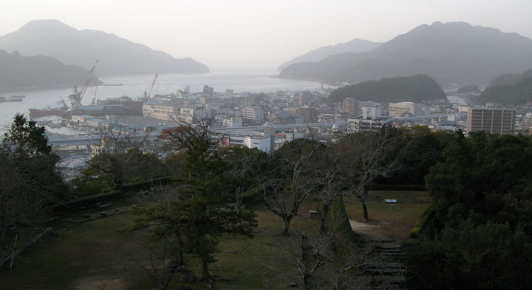 宇和島城からの黄砂の市内