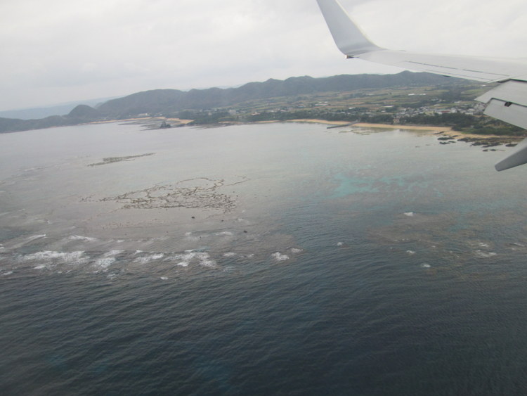 奄美大島空港への着陸態勢・・サンゴ礁の海岸