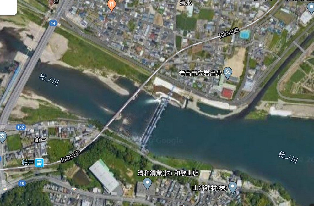岩出〜船戸間にある紀ノ川航空写真(車窓から見落とし)