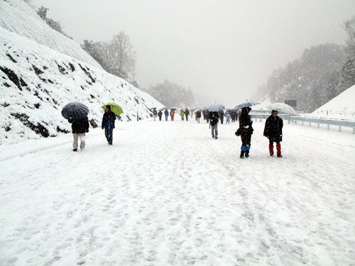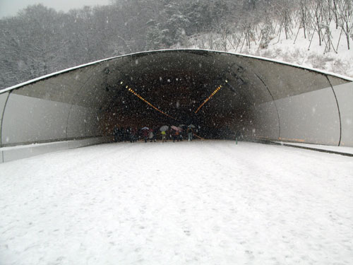 | 雪の中を一路金勝山トンネルへ |