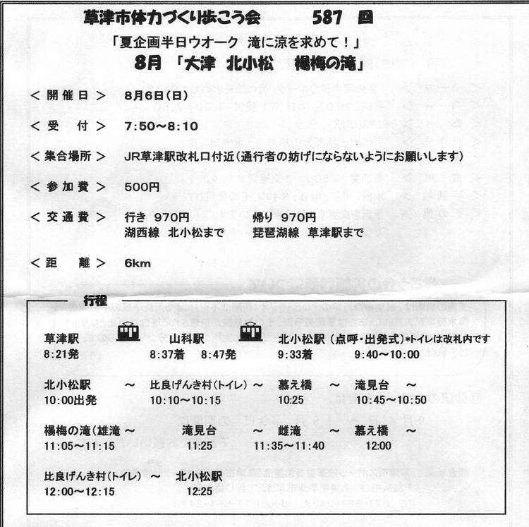 快晴 最高気温32℃ 参加者:65名(+スタッフ15名) 登り3K 下り3K 健脚向け