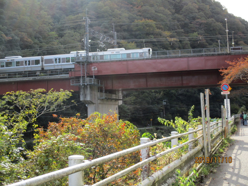 | 武田尾駅先の橋梁を渡る快速電車 |