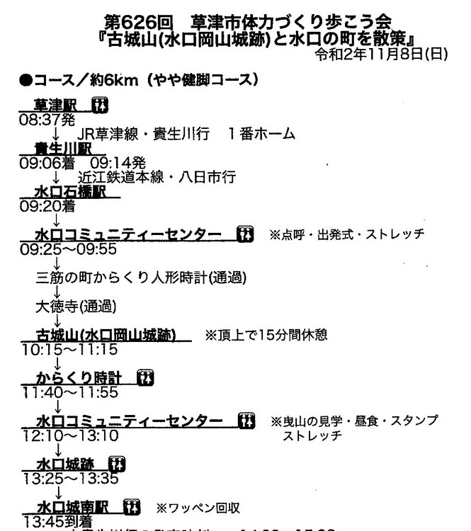 草津市歩こう会 11月8日(日) 城山と水口の町散策