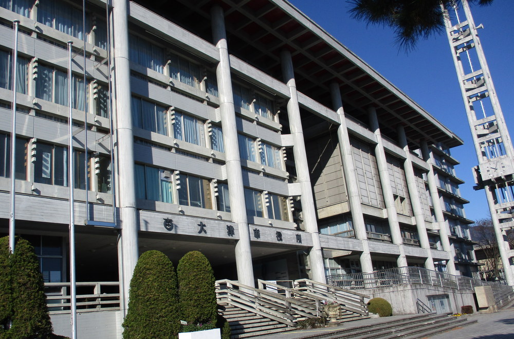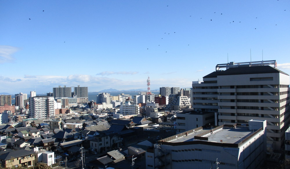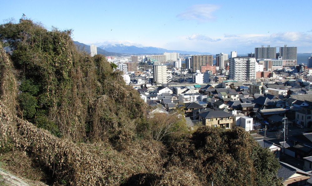 | 善光寺前からの市内ー右は大津赤十字病院 |