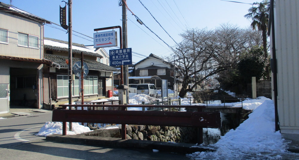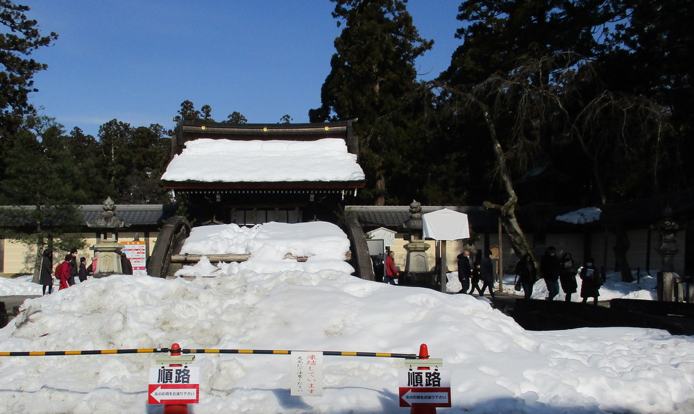 | 雪で通行止め「多賀大社のたいこ橋」 |