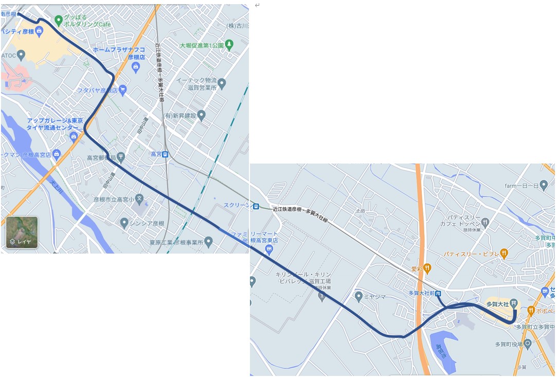 | 当日の経路(南彦根~高宮文化センター~多賀大社)約7㌔ |