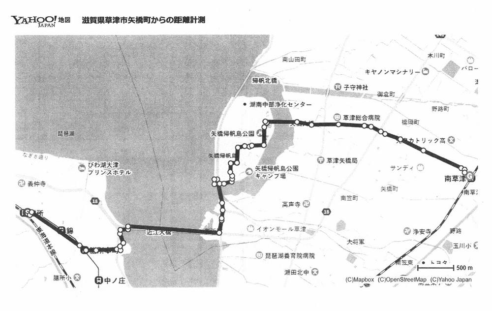 | 当日の経路(JR膳所駅~膳所城址公園~矢橋帰帆島~南草津駅) 約9㌔ |
