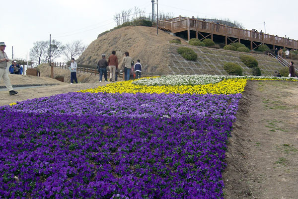公園内を歩く、昼食地淡路花やしきの花壇、東浦町